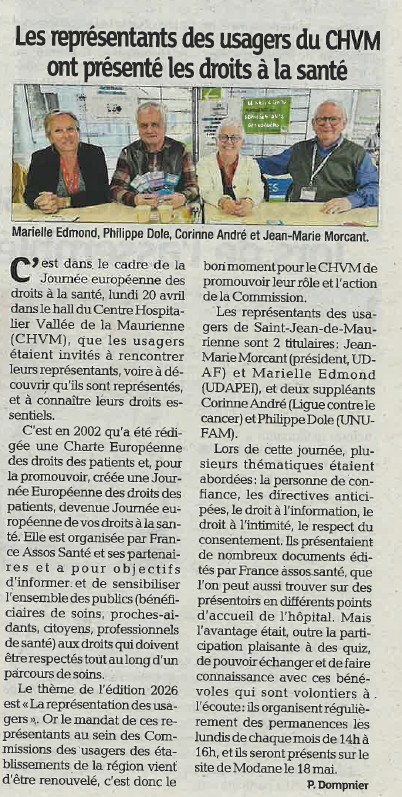 Journée européenne des Droits en santé - Le Dauphiné Libéré - 21/04/2026