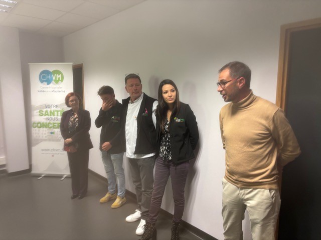 Les membres du Conseil de surveillance du CHVM, réunis ce jour-là à Modane, ont également dégusté Le Grand Repas. Photo de g. à d. : Madame la Sénatrice Martine Berthet, ambassadrice de la démarche en Savoie était présente, accompagnée par Julien Cosme, Conseiller spécialisé circuits courts à la Chambre d’Agriculture Savoie Mont-Blanc, Gilles Métral, Chef de restauration à l’Atelier Leztroy, parrain et concepteur du menu du Grand Repas en Savoie, Elsa Philippon, Chargée de relations clientèles et développement à l'Atelier Leztroy, et Brice Bouvard, Responsable du service restauration et diététique du CHVM.